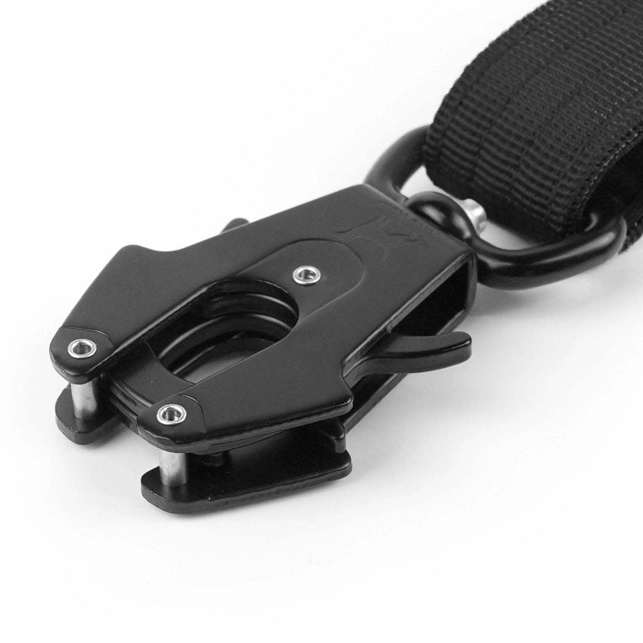 Die taktische Leine ist mit einem robusten Metallverschluss ausgestattet, der über eine integrierte Schnellverriegelung verfügt. So bleibt die Verbindung zur Halsbandöse auch bei starker Belastung zuverlässig gesichert – ein unbeabsichtigtes Lösen ist nahezu ausgeschlossen. Ideal für aktive Hunde mit viel Zugkraft.